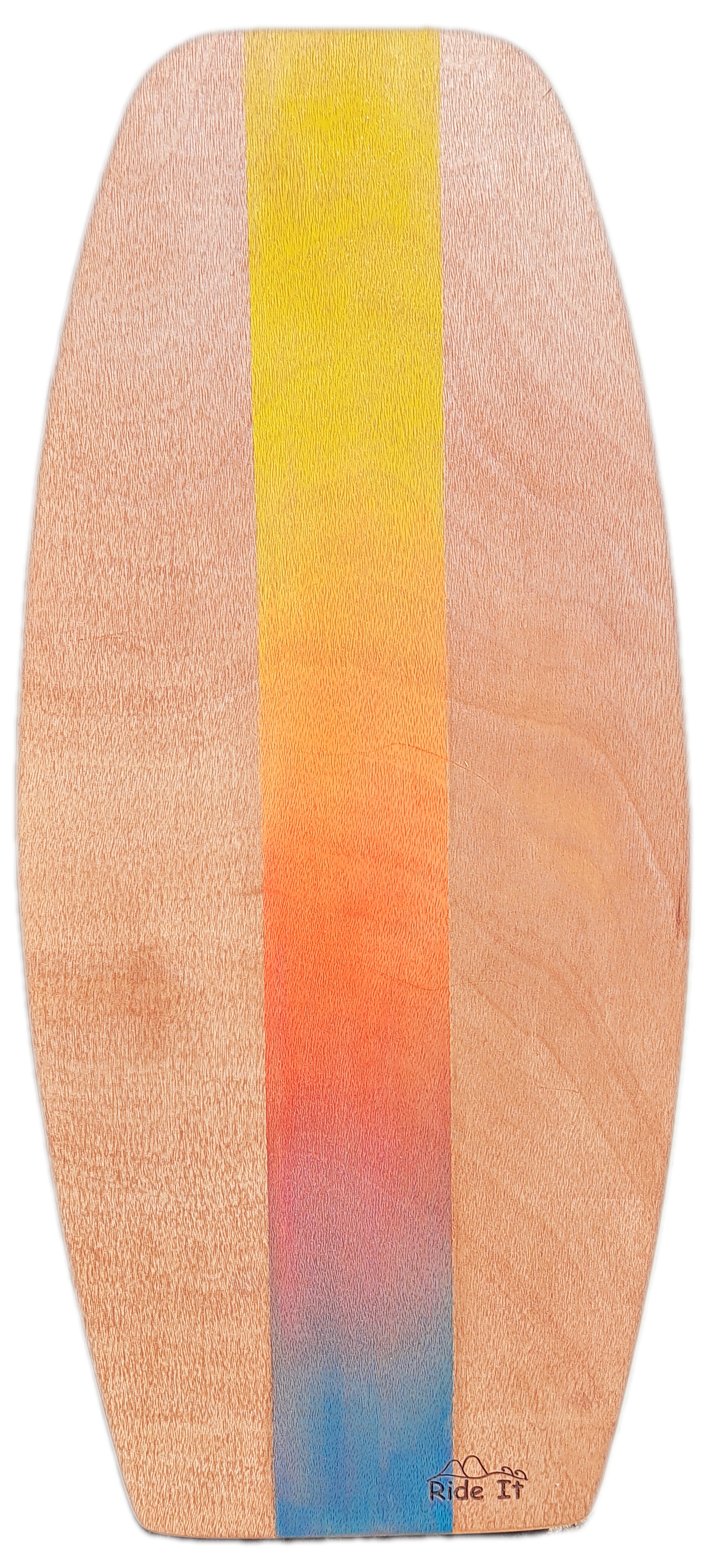 Ride It Boards and Rollers are made in New Zealand and is from natural and Plywood, hand crafted, stained/painted and treated by hand with non-toxic oil to protect. Slight variations may occur, as no 2 pieces of wood is the same.